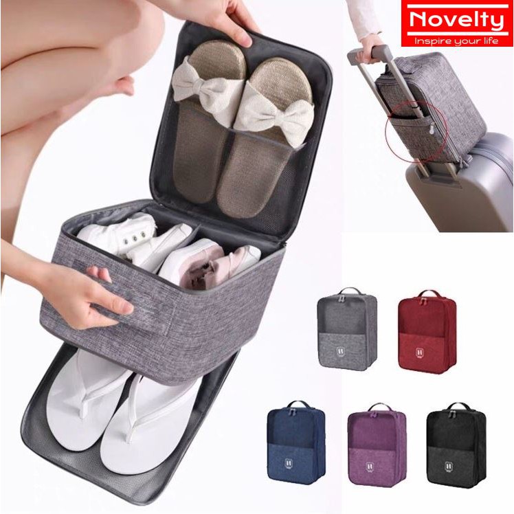 [SG ready stock] Portable Travel Shoe Bag Organizer Pouch Shoe Storage Bag with luggage Strap