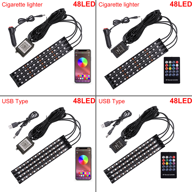 [WIDELY APPLICATION] Car interior lighting is a universal kit, it fits for most of car, including Sedan, SUV, Truck, Wagon and so on. Car led interior strips, suitable for any kind of car and truck. With four pieces of interior strip lights, built-in cigarette or usb, protect the led strips well.