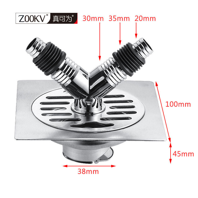 Zookv 304 Stainless Steel Washing Machine Water Floor Drain Trap Combo With Angle Connector For Hole Cover Hose With Double Two Hose Deodorant Filter 4 / 6 Inch Floor Trap Anti Insect Smell Seal Antif