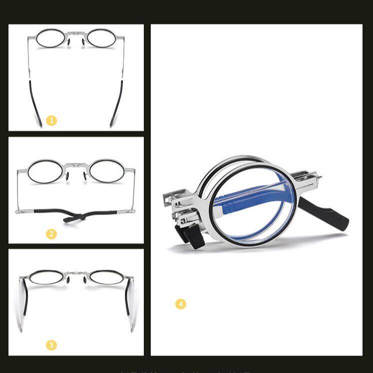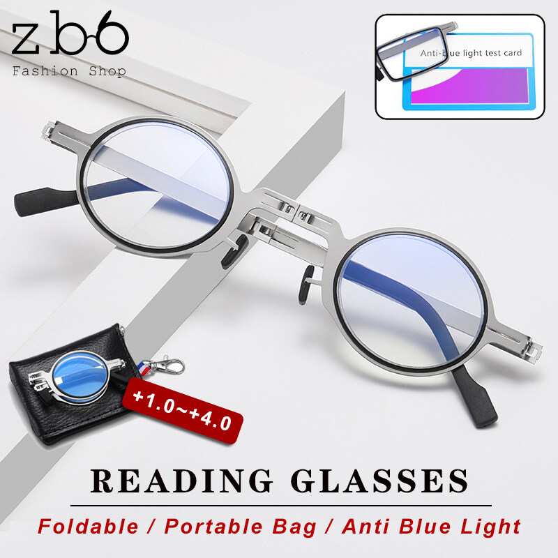 Ultra-thin Foldable Reading Glasses for Men Women Anti-Blue light Eyeglasses Metal Round Frame +1.0 To +4.0 With Free Bag