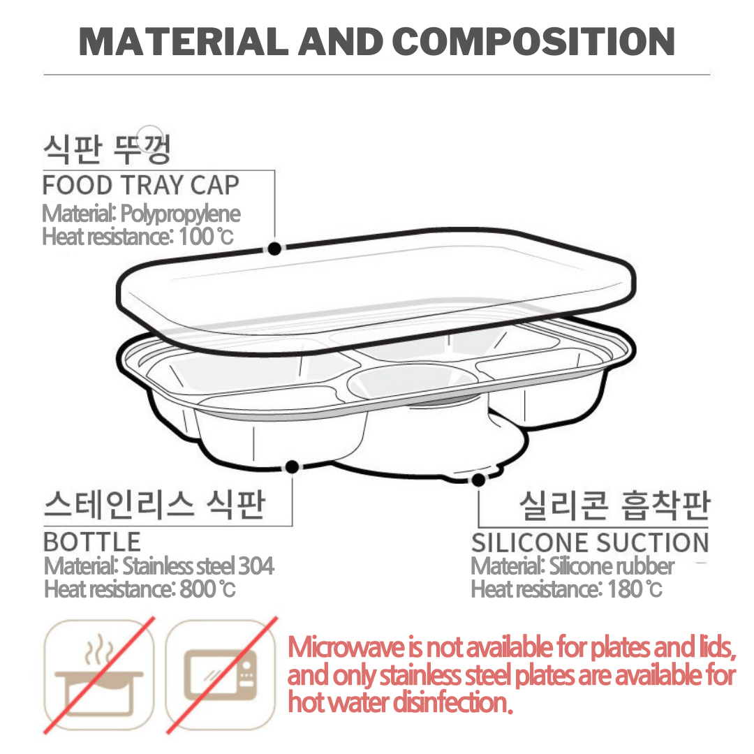 -Product made of food grade stainless steel SUS304, BPA free.-Consists of different compartment(3 sections or 5 sections).